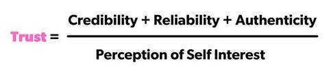 This shows us that there are three elements that increase trust: credibility, reliability, and authenticity. And that the perception of self-interest reduces trust.